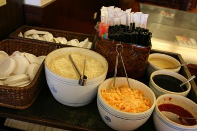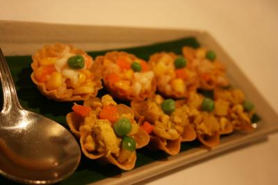 このほか、ガイ・ホー・バイ・トゥーイ(鶏肉のチリソース漬け、パンダンの葉包み揚げ)、