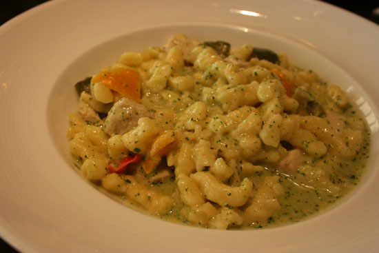 濃厚なグリーンカレーがよく絡む。