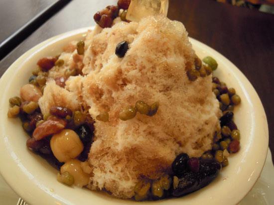 山盛りの氷に数種類のお豆がたっぷりと乗っています。