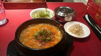 スンドゥブ料理が主体の韓国料理店。地下1階にある小さな店には、カウンター席と少人数の座席があるコンパクトな作り。ランチのセットにはライス、サラダとおかずが1品付く。ライスは無料でお代わりできるのもうれしい。