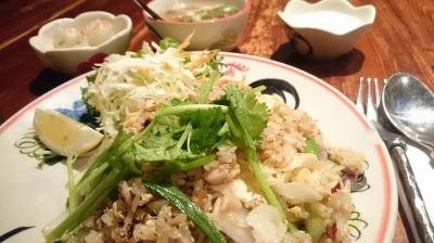 タイ東北地方・イサーンの料理を出すお店。オリエンタルな装飾が施された地下一階の店内は、タイポップスのビデオが流れ異国情緒満点。ランチで期間限定メニューのラープのカオパッ(焼き飯)を頼んでみると、辛味と酸味の効いた鶏ひき肉に、生ハーブのフレッシュな香りが絡まって絶品であった。