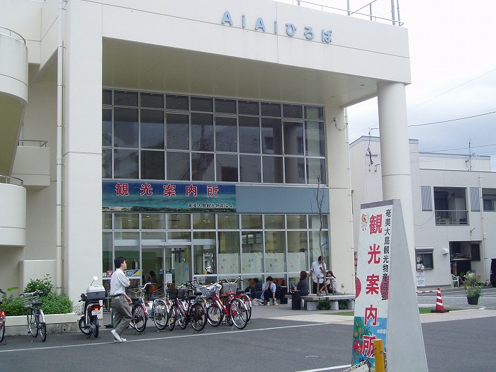 奄美大島名瀬の中心街にある地域交流センター。地元の人々のコミュニティーとなっている三階建ての建物で、1階にはツーリストインフォメーションセンターが併設されており、パンフレットなどが入手できる。また無料で荷物を預かってもらえるのも、旅行者にとってはありがたい。