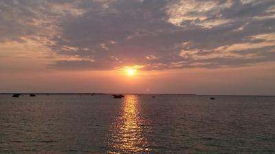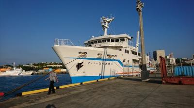 宮古島と多良間島をつなぐフェリー船。宮古島港を出港すると船はすぐ巨大な伊良部大橋の下をくぐるのだが、このクラスの大きなフェリーだと、橋の下ギリギリを通過するのに驚く。フェリーは二時間程で多良間島に到着する。