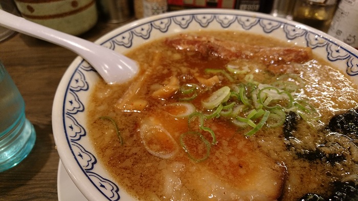 博多ラーメンのお店と看板を掲げているが意外にもスープは豚骨系ではない。看板のラータンメンは香味野菜をベースにゴマをブレンドしたスープが特徴で、さっぱりとした中にもしっかりコクがあり、他にない美味だった。