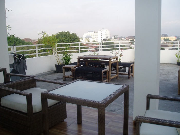 ジョグジャカルタの繁華街であるソロウィジャヤン通り。ホテルや飲食店が立ち並ぶその通りの西端にあるホステルなのでロケーションは抜群。屋上にあるテラスは朝食の場所ともなっており、そこから眺める眺望が良いのもグッド。