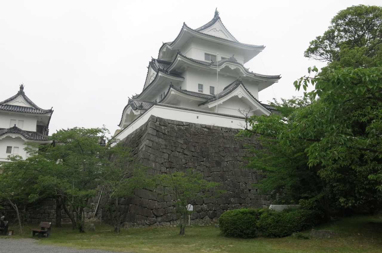 天守閣もありますが、こちらは昭和に入ってから建築されたもので、実際には天守閣が無かった城です。高虎の時代に完成直前に大嵐で倒壊してからは再建されていないんです。