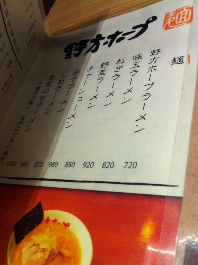 高田馬場に2013年に開店した「野方ホープ」に行ってみました。大きめのお店で、カウンター、テーブルともにゆったりしています。店員も元気。野方ホープラーメン720円に100円で半チャーハンを付けました。脂は普通にしましたが、美味しくいただきました。