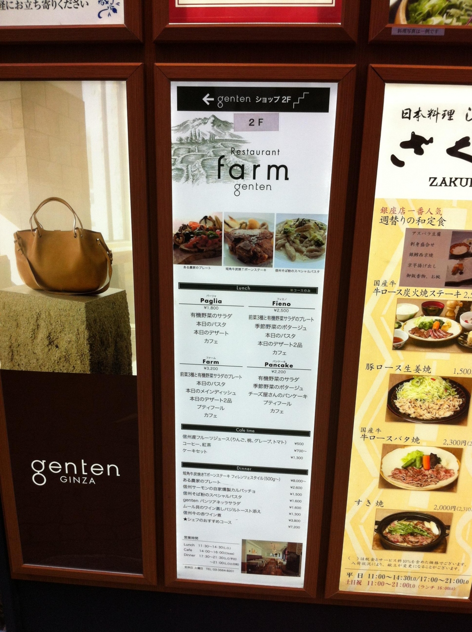 銀座松屋の裏にあるバッグなどを扱うブランドショップ「genten」のレストラン。一階はショップで二階にレストランがあります。