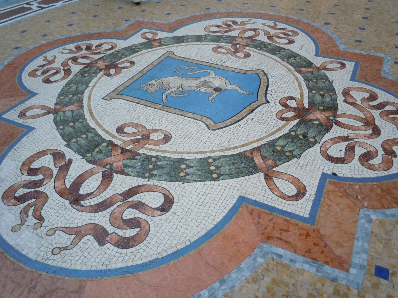 床には、様々なモザイク画があります。その一つ、雄牛のモザイクでは、観光客がかかとを軸にクルクル。おまじないです。- 旅行時期