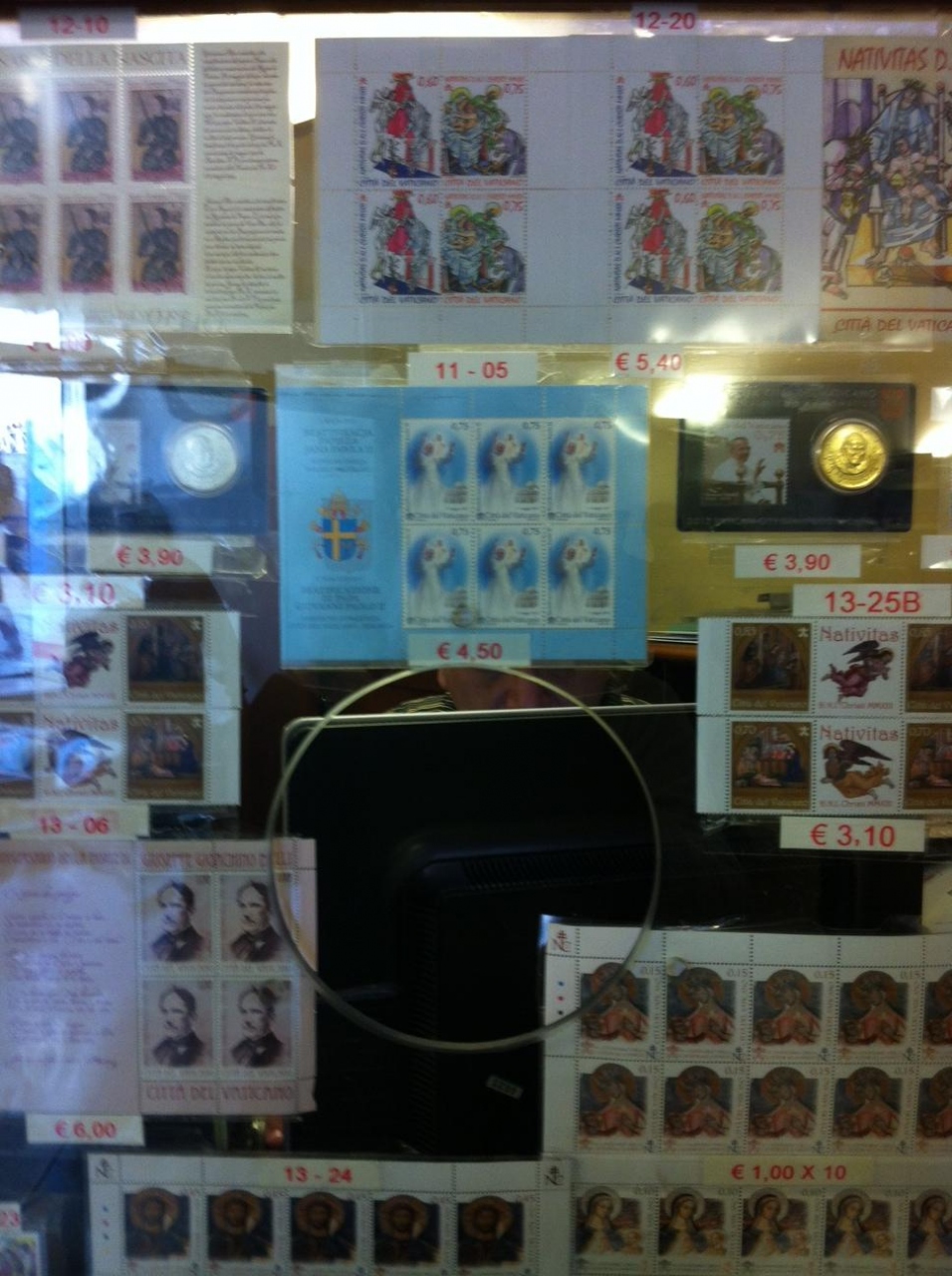 そんなことも思い出しつつ、サンピエトロ寺院を出たところのバチカンの郵便局で絵葉書と切手を買って投函しました。「私たちが日本に着くのとどちらが早いかな」などと言いつつ。