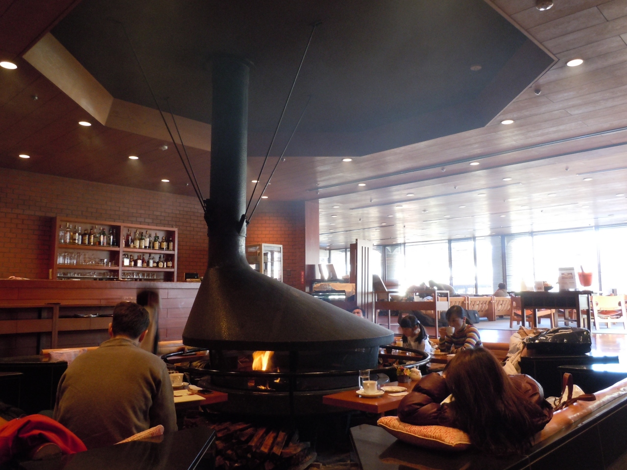 軽井沢プリンスホテル・イーストのラウンジ。暖炉の火が暖かく、気持ちよくゆっくりできます。