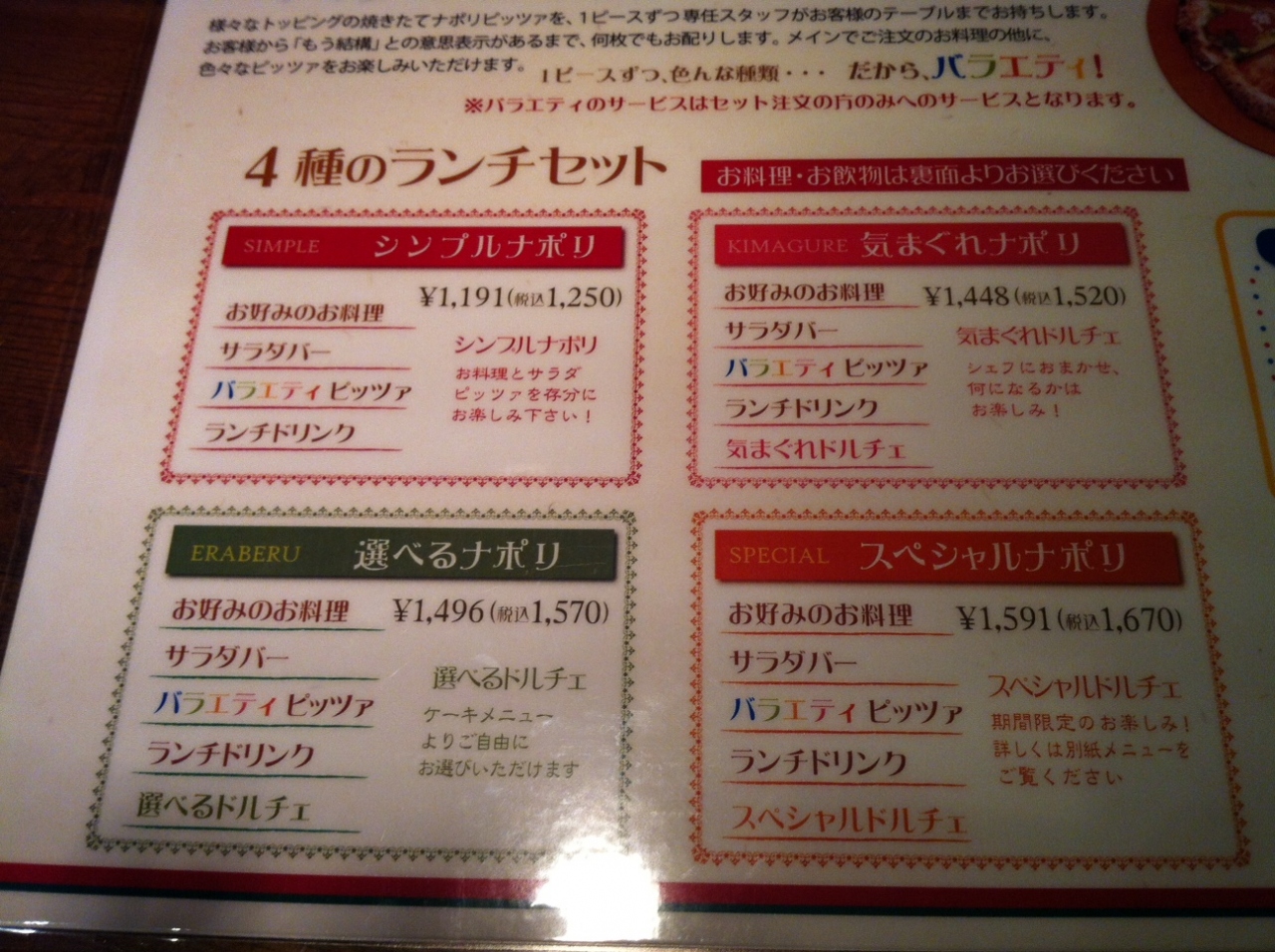 デザートをつければ、デザートの内容で何段階か値段が上がります。