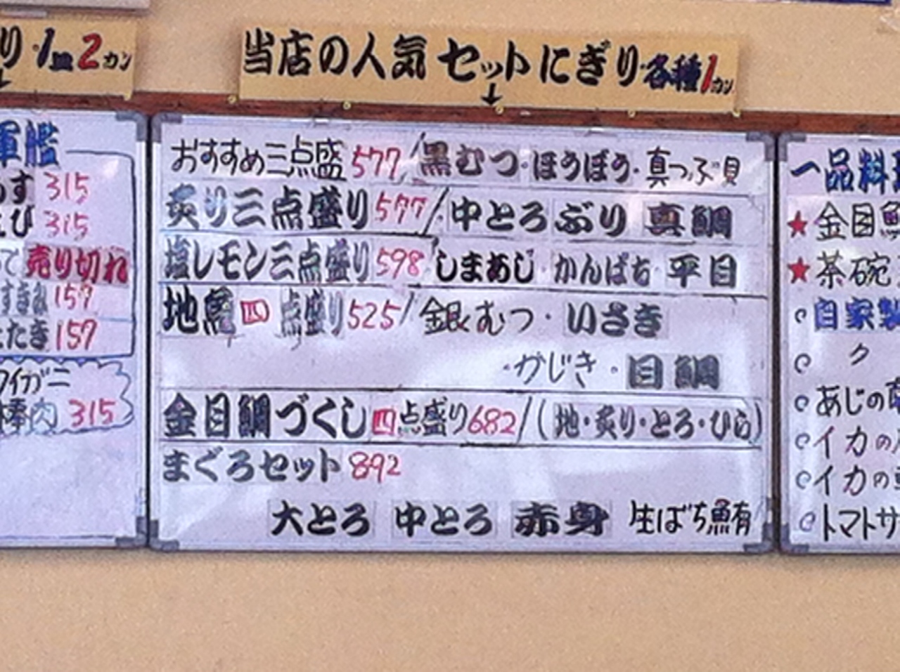 さて、今回。9月25日水曜日。昼のピークか?12時30分ころ入店。雨降りの水曜日。混雑しています。カウンター内の料理人は完璧にパニックです。フロアーに罵声が飛びます。また、フロアーのおばちゃんたちが、3人もいるのに揃いも揃って…(以下、自主規制)。