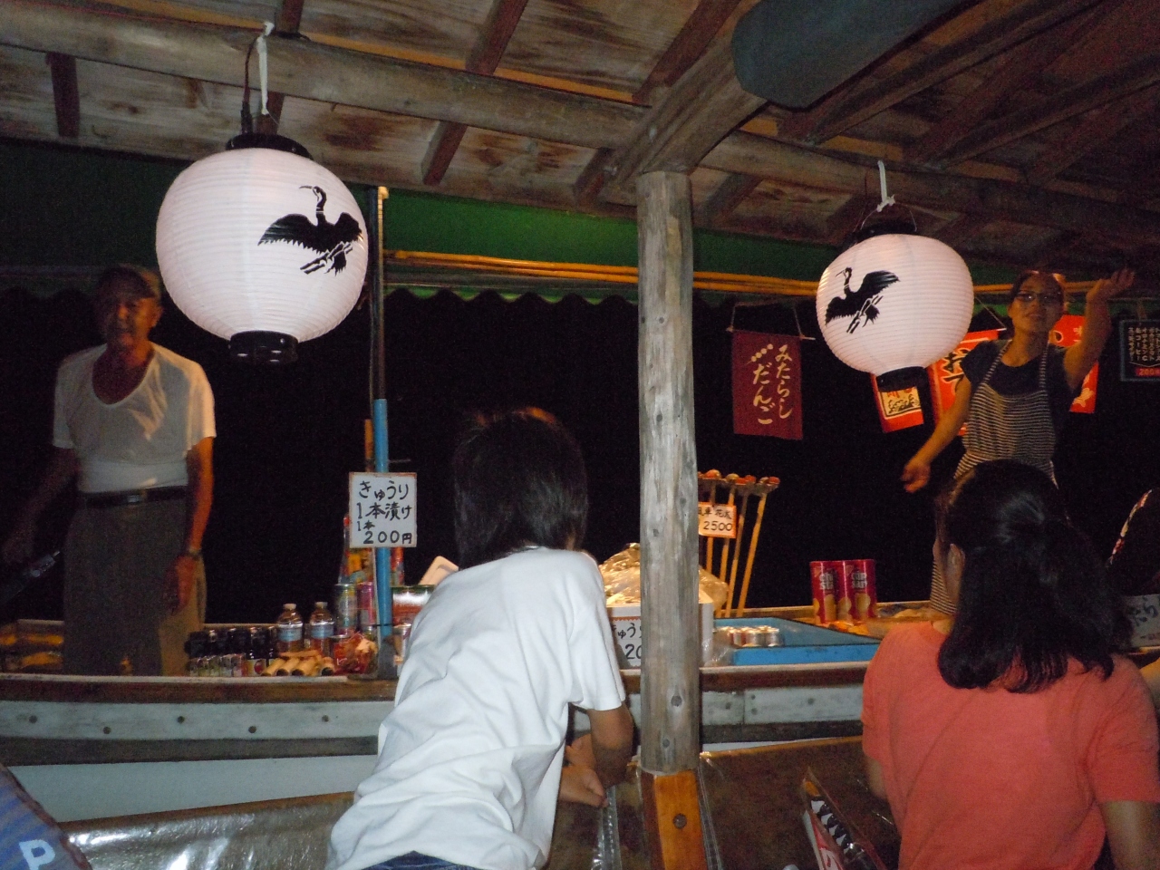 一人1700円。遊覧船が何艘も出ます。バスなど団体でいらっしゃる方も多いようです。実は宇治川での鵜飼に参加しようとしていたのですが、宇治川方面は局地的な豪雨で被害が出ていたため、車を飛ばして嵐山へ。嵐山には出港1時間弱前に到着しましたが、予約なくとも全然大丈夫でした。あー良かった。鵜飼は今回の京都旅行のメインだったのです(私にとってですが)。