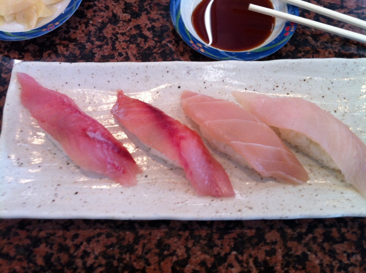 店名は回転寿司ですが、何年もお寿司が回っていたことはありません。これからもないでしょう。食べたいものを紙に書いて注文します。むか~しは、「ただいまの時間はお寿司はまわっていませんので注文してください」とイチイチ説明されていたと思いますが。