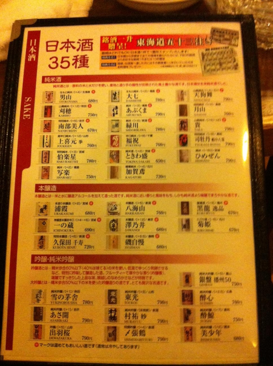 ここな日本酒の種類が多く35種類ときたもんだ。更に東海道53次に仕立てたポイントカードがあり、日本酒を注文する度に押してくれます。満点になると一升瓶プレゼント。53個のポイントが必要ということでは無いので、すぐたまりそうです。- 旅行時期