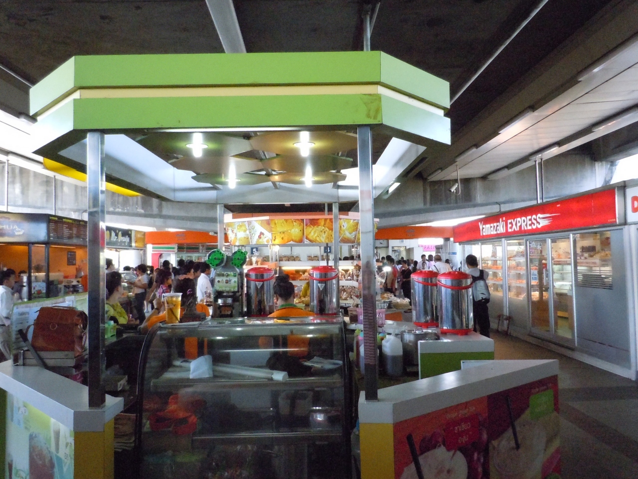 BTSスクムビット線の終着駅。さらに郊外からバス等でこの駅で乗り継ぎ通勤している方も多く、乗降客数はかなり多いです。そんなこともあり、駅構内には何軒かの飲食物の売店もあります。日本でもおなじみの山崎パンもありました。