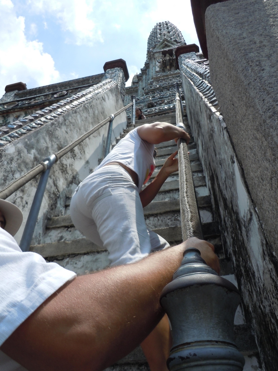 暁の寺。ワットアルン。かなりの急斜面ですが頑張って仏塔の上まで登りましょう。でも足はすくみます。