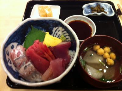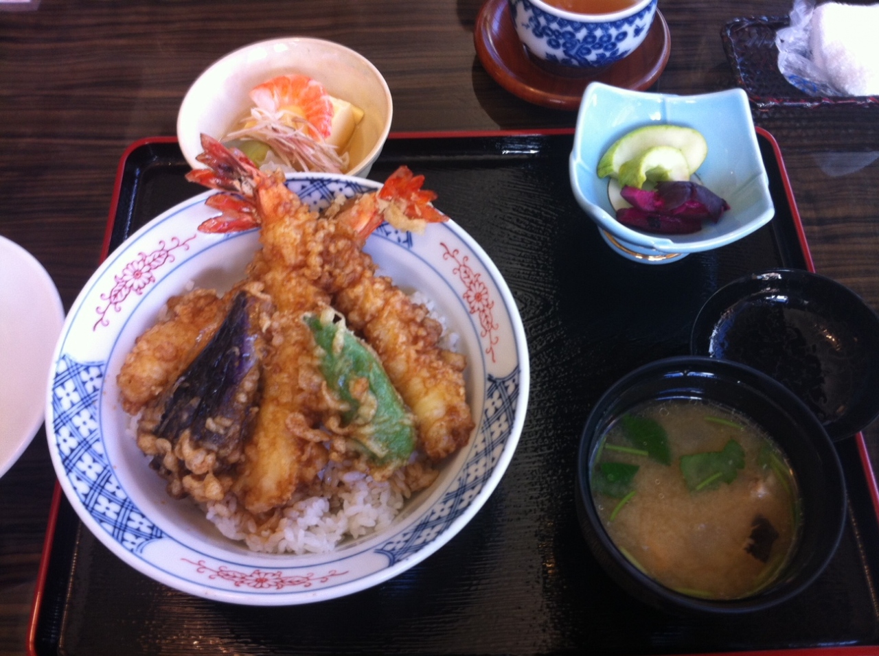 ここの「割烹のサラリーマンセット」は超お得です。お邪魔した時は税込800円でイカ刺し、イカげそ入りのかき揚げ2ケ、アイスコーヒー付。イカ刺しもボリュームあります。すごく美味しそうでした。ただし数量限定で、同伴全員には用意できないとのことで、笑顔で泣く泣く譲ったのです。で、私は1260円の天丼にしました。大ぶりのエビ3、茄子、獅子唐。こちらも美味ですが、サラリーマンセット!!!残念。- 旅行時期