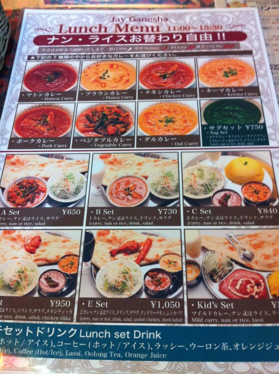 ランチメニューは、650円。ドリンク付きで730円、カレー2種にすると840円とリーズナブル。その分、カレーの具は価格通りかな。- 旅行時期