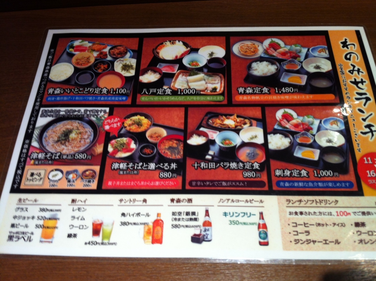 凄く立地が悪いところに「わのみせ」の看板が出ています。そういえばこの地下街、お寿司屋さんはあったが、和食の店はなかったような気もするが。。。年配の方が立ち止まりメニューを覗きます。青森のお店で、なかなか興味深いメニューがいろいろあります。