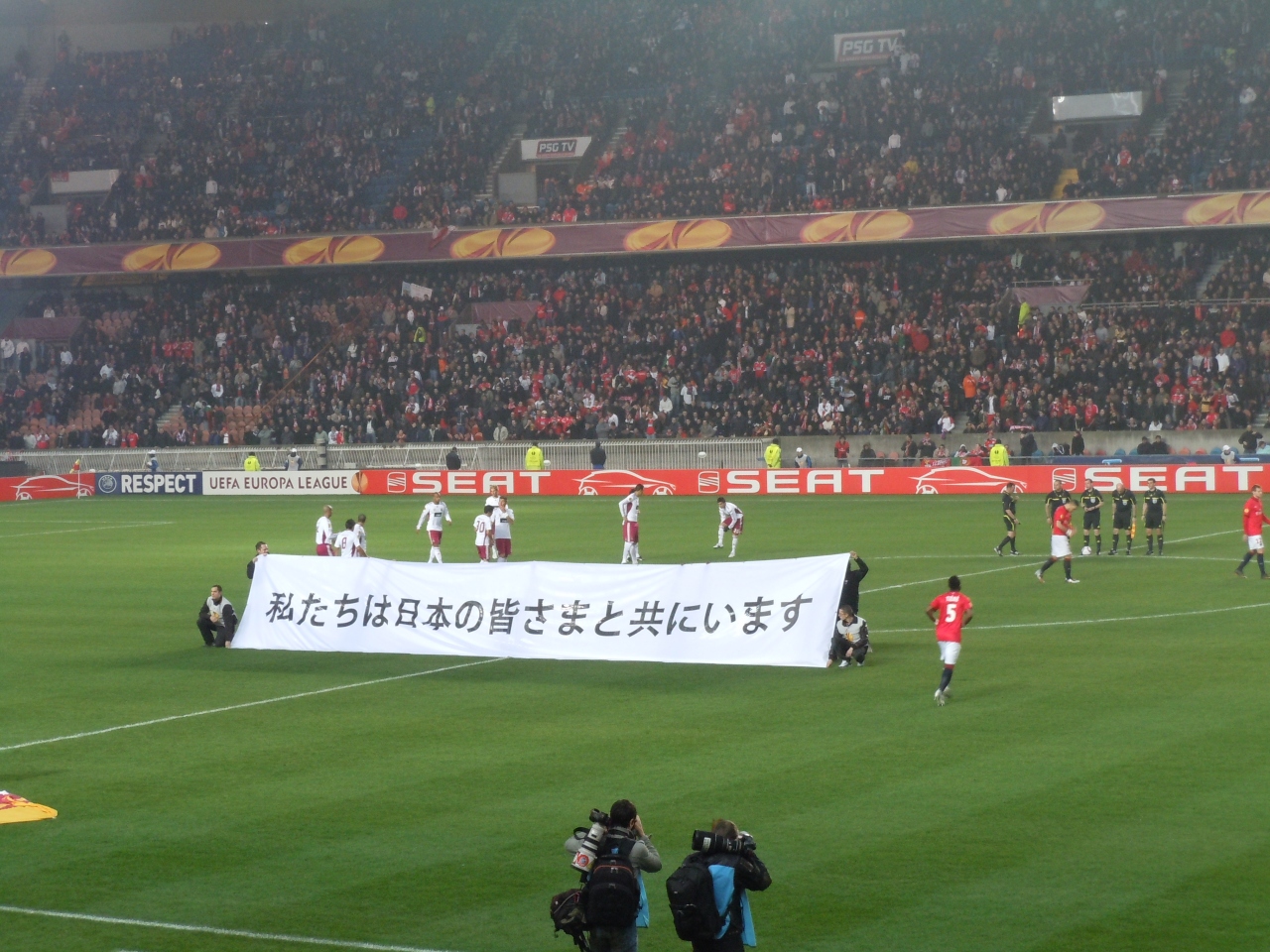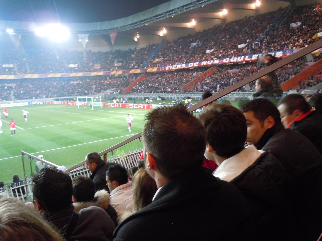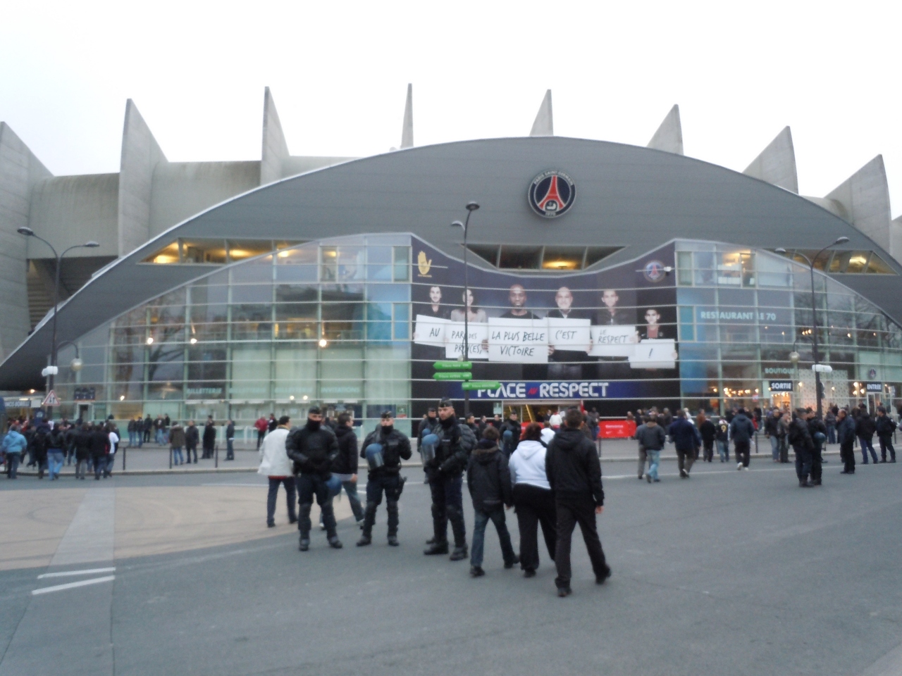 パリサンジェルマンのホームスタジアム。地下鉄9号線Porte de St-Cloud駅から直線だと5分くらいか。ヨーロッパリーグのラウンド16、相手が熱い応援で名高いポルトガルのベンフィカということで、人ごみが凄いし、スタジアムへの導線も限定しているので20分くらいかかりました。