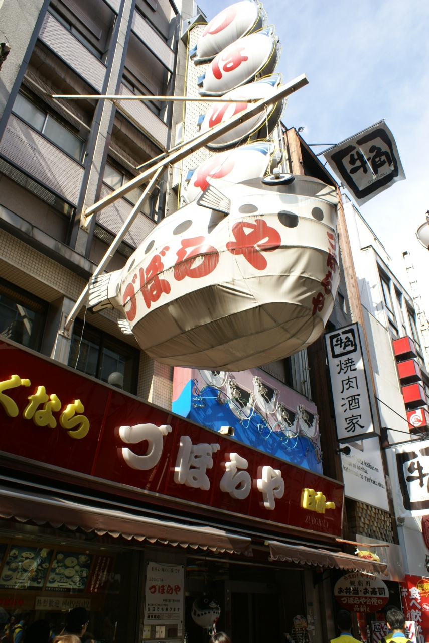 道頓堀の「づぼらや本店」に行くことにしました。道頓堀が初めての息子は、独特の看板にも興味津々。