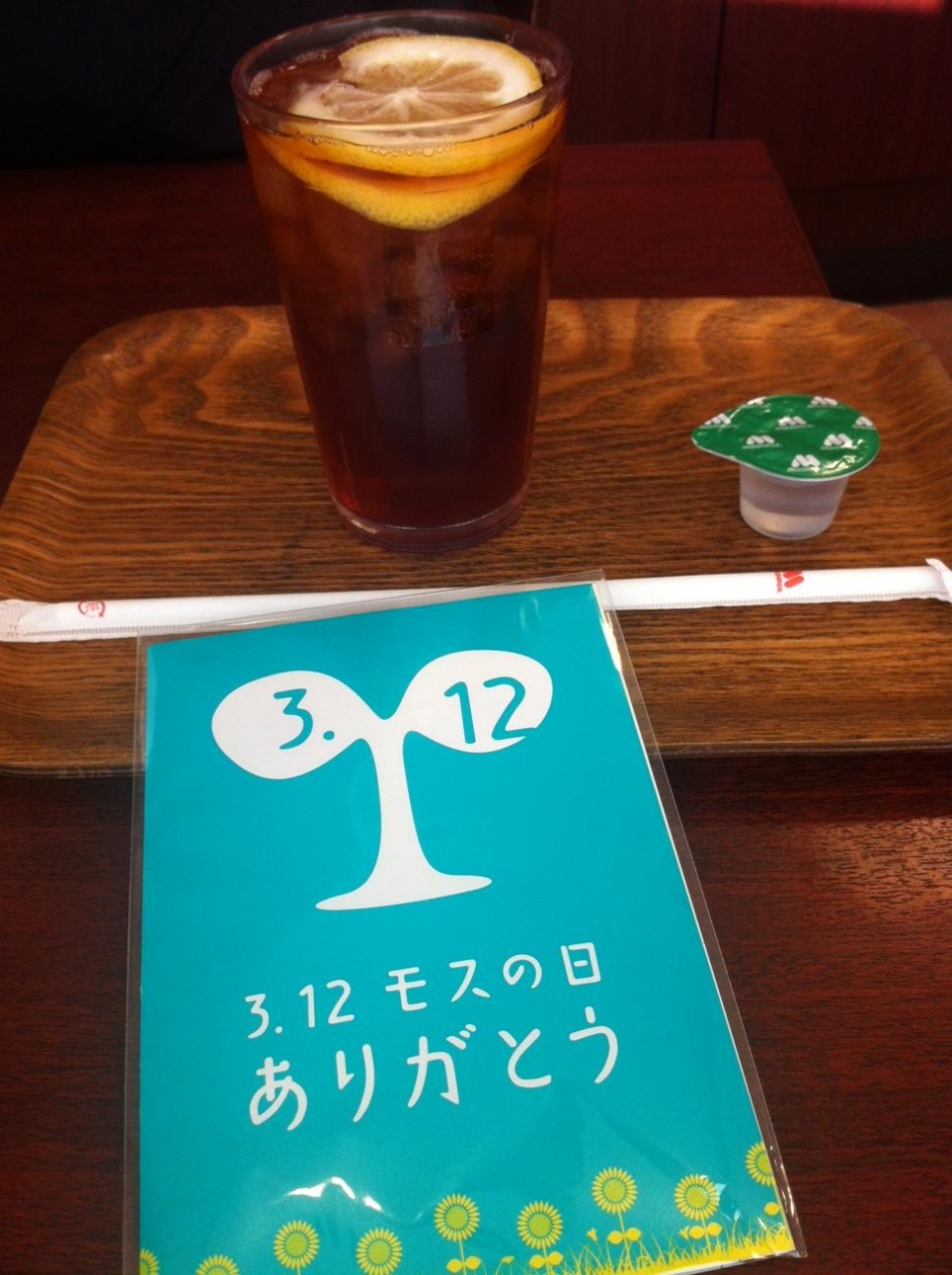 モスバーガーを3月12日に利用したら、なんとモスバーガー開業の記念日、「モスの日」だそうで、プレゼントをいただきました。今年は、「ミニひまわりの種」でした。また、咲いたミニひまわりの写真を募集してポスターをつくるそうです。