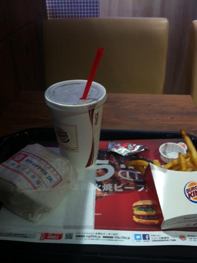 日本撤退前、私自身が昼夜を問わず働きまくっていたころ?(自分だけの相対比較ですが)、バーガーキング好きの同僚がよく食事を調達してきてくれました。そんなことを思い出しつつ。昼食。ワッパージュニアのセットをいただきました。