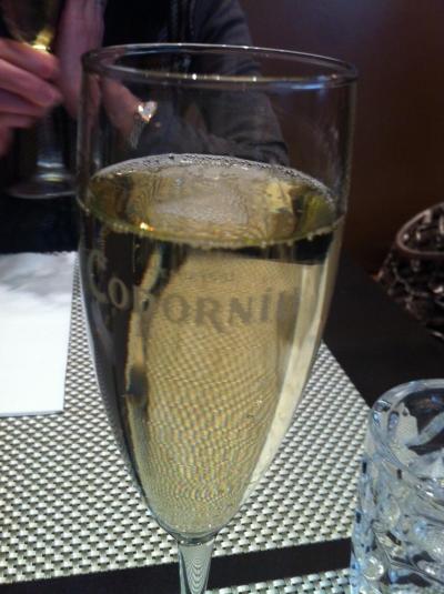 シアターのチケットを持っているとドリンクサービス。スパークリングワインをいただきました。- 旅行時期