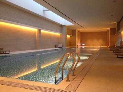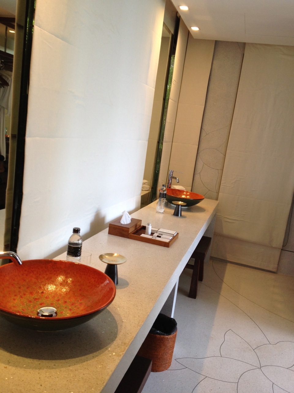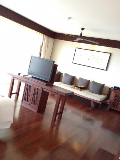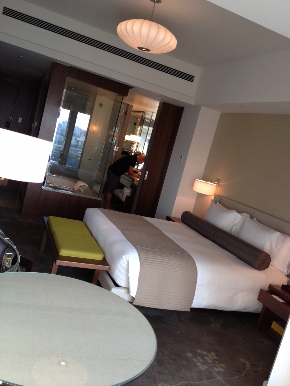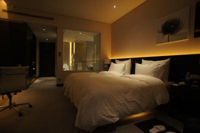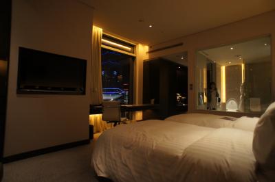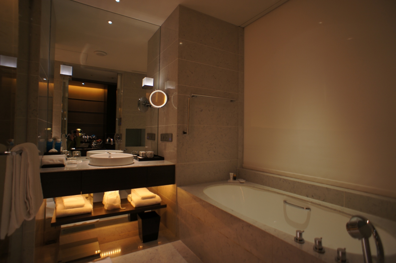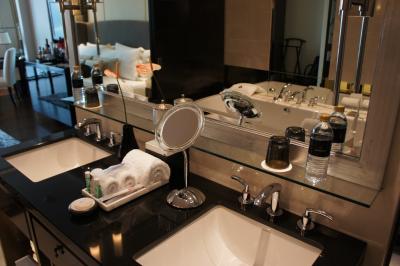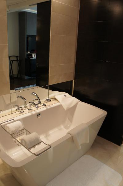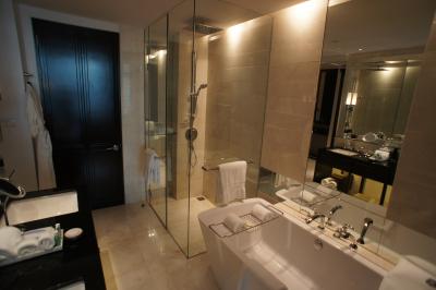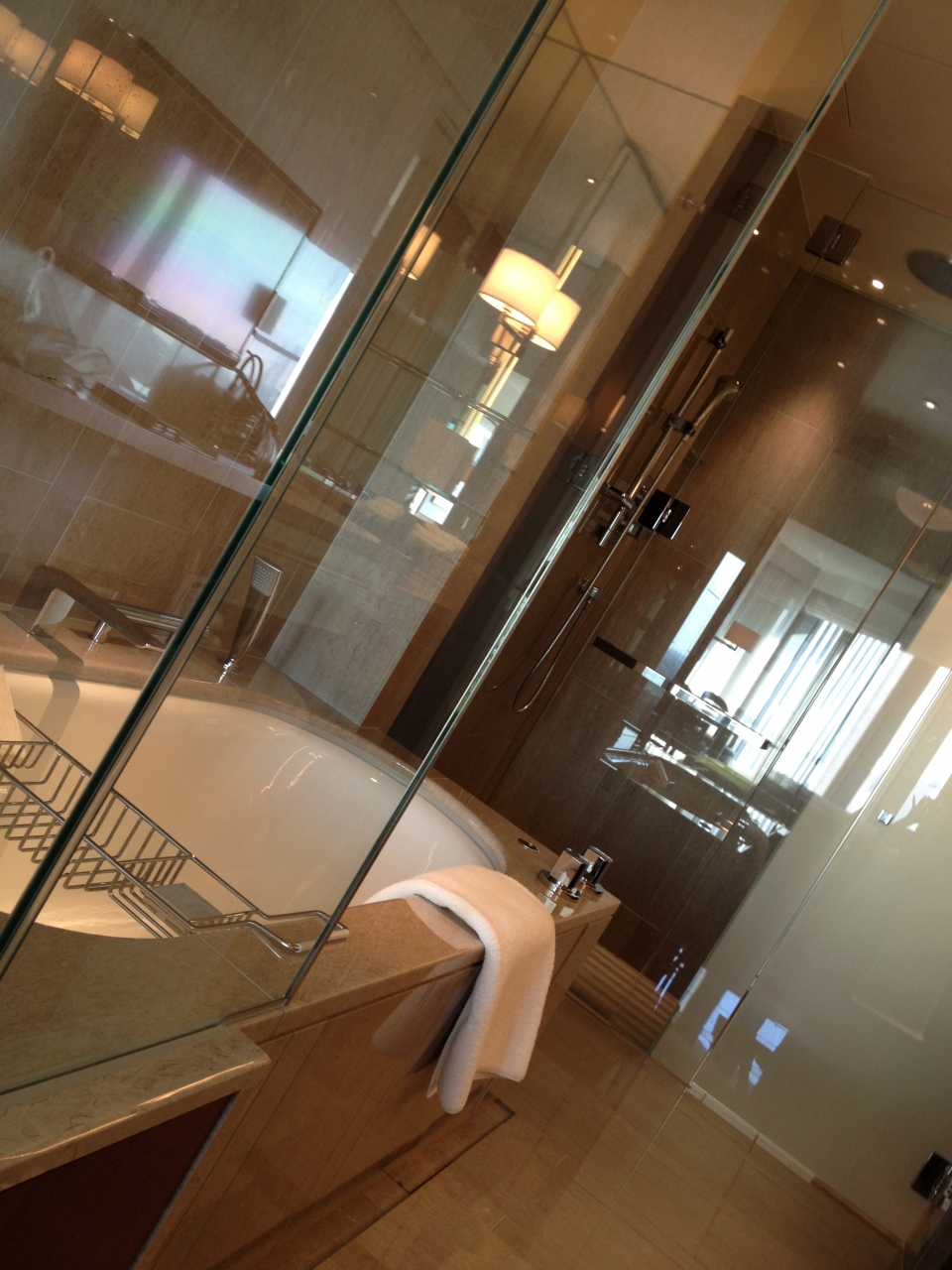 - ガラス張りの浴槽。テレビ付き。シャワールームは別。非常に快適。