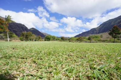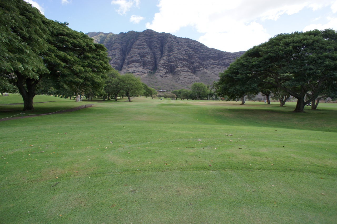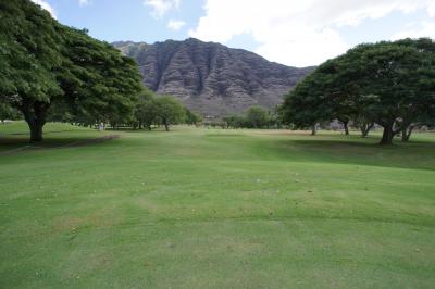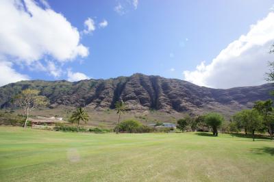 ホノルルのホテルから早朝にバンでマカハ・バレー・カントリー・クラブに向かいます。