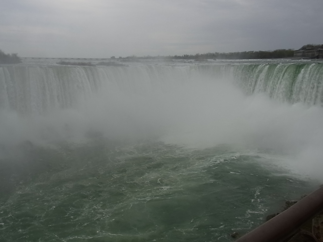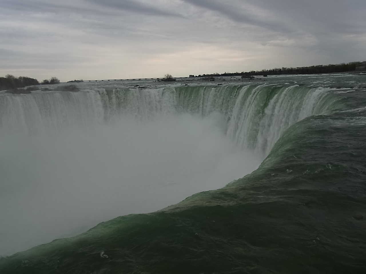 結構真横からすぐそばで滝壺に流れ込む大量の水流が見られます。