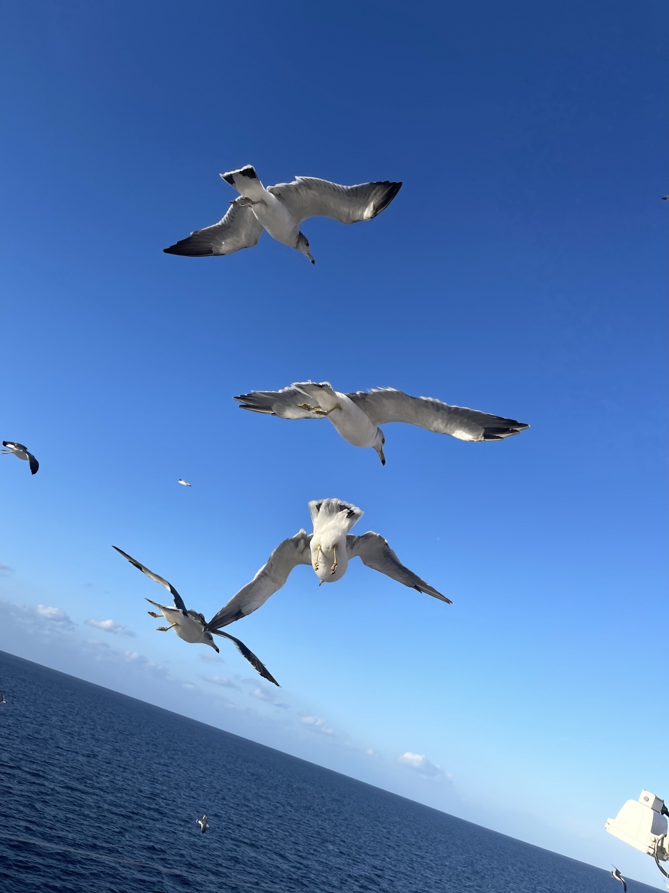 かっぱえびせんを買ってかもめにえさをやる光景が続きます。