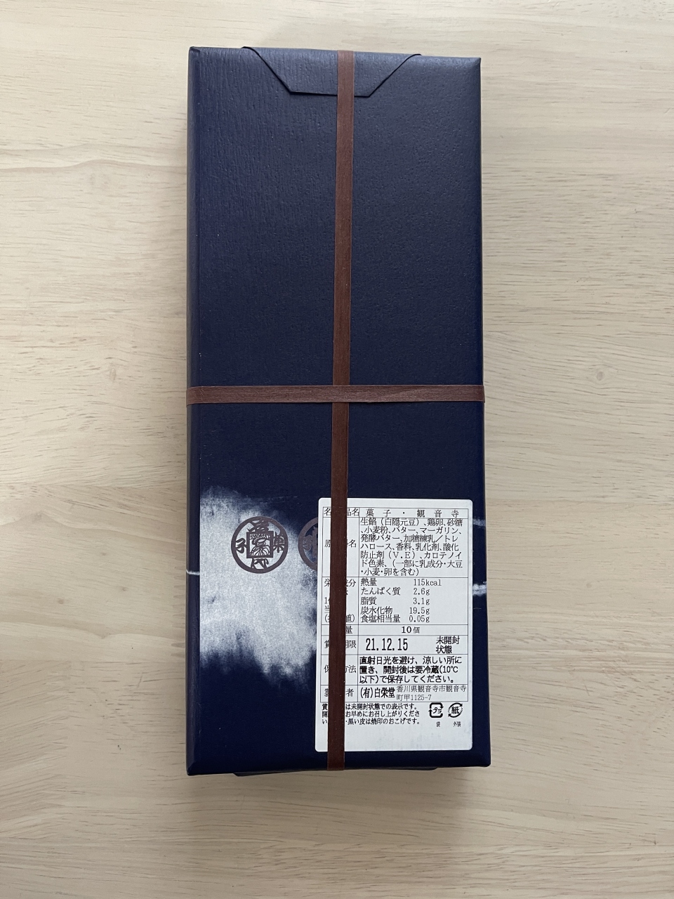 観音寺に行かないと手に入れることができない銘菓。らしいのでついつい購入しました。- 旅行時期