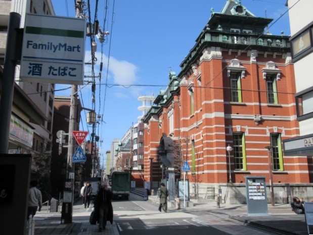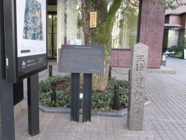 また江戸時代には三条大橋は東海道五十三次の西の起点として役割を果たし明治から大正には近代的建築物が建ち景観をもたらしています。その三条通を西へ烏丸通まで歩いてきました。