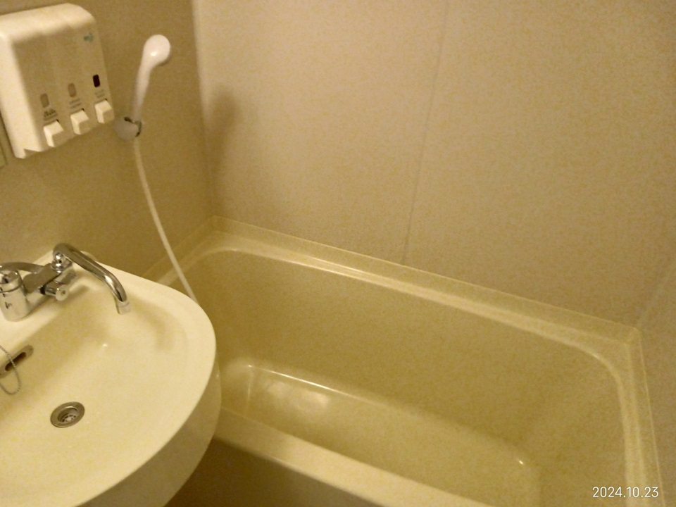お気に入りは湯舟が広いところ、たっぷり旅の疲れを癒すことができます。またTVは遠くからも見やすい32型の大画面が良いですね。それと自販機が充実しビールやジュース類も、お気に入りはアーモンドや柿の種小魚などが入ってお好みミックス、そして癖がなくサラッとした炭酸水はアルコールには必需品です。