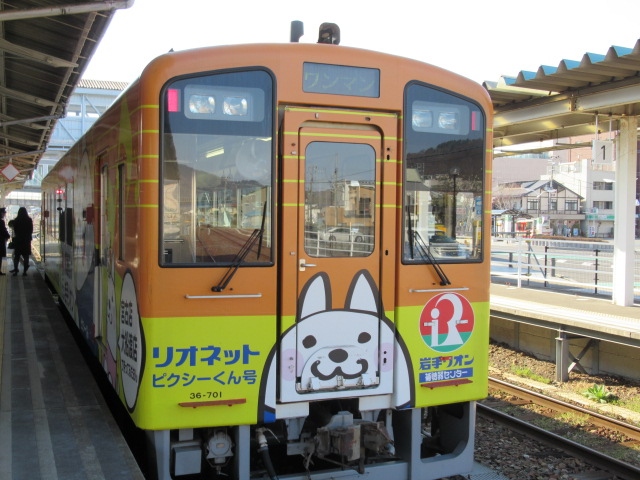 車両の種類は多く、これぞ三陸鉄道の顔と言われる三色のカラーの赤は鉄道に対する情熱、青は三陸の海を表現しているとのことです。また企業が協賛したラッピング車両も運転しています。可愛い写真は㈱岩手リオン補聴器センターからのラッピングです。
