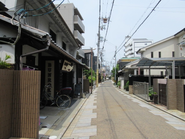 京都外環状線の「桃山西尾」交差点から北に延びる新小栗栖街道は対面2車線道路で商業施設のMOMOやホームセンター、車屋さんなどが並びバスや多くの車両が利用し活気ある街道です。