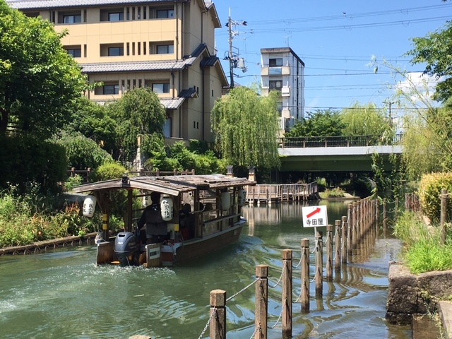 坂本龍馬が定宿にした「寺田屋」は目と鼻の先で、橋の下の酒蔵など並んだ情緒ある濠川には観光船である十石船が運行し伏見らしき景観を見せつけています。