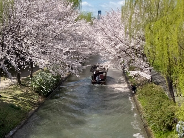 桜の時期の訪問ではありませんが以前撮影した満開の桜の写真を添付しておきます。この京橋の上から撮影したものです。綺麗でしょう。- 旅行時期