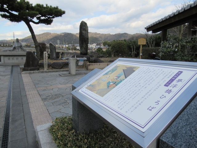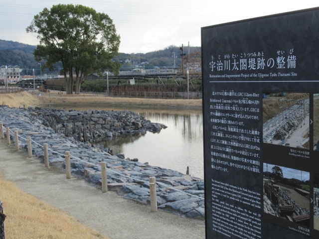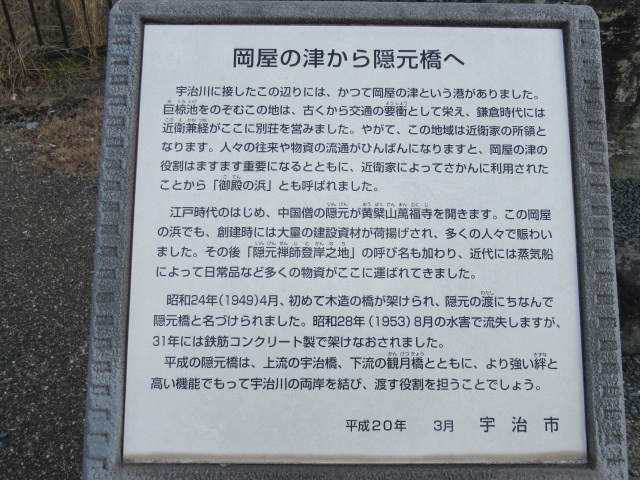 歴史ある場所で水運が主流だった時代には岡屋の津と言う港があり、黄檗宗を開いた隠元禅師が上陸したようです。またこの先にある萬福寺建設には、ここから多くの資材が運び込まれています。