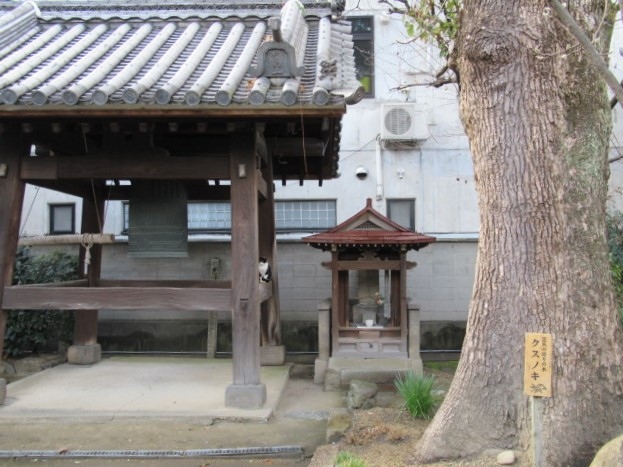 入口の右手には案内の駒札が建っているのですが年季が入りすぎていて読むことができません。由緒ある寺院のようです。さらにそう大きくない鐘楼があり区民の誇りの木と書かれたクスノキもありました。最大の見どころは、徳川家康の次女の督姫が、豊臣秀吉より贈られたという牡丹のようですが時期外れで残念。