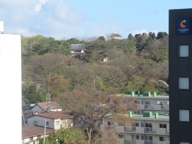 まず秋田犬のお出迎え、ロビーは広く清潔感があります。エレベータは3基待つことありませんフロアーにはソファーがあり、気持ちよく室内に入り外を見ると久保田城が見えるではありませんか。いいねー。