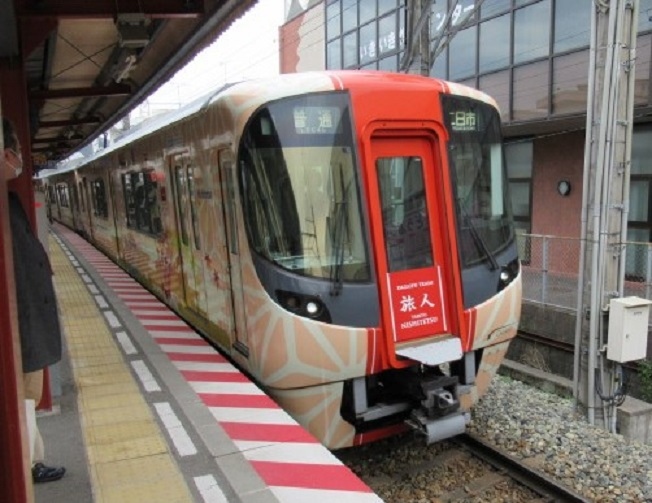 何でもない電車のように思うのですが、この路線には観光列車として「旅人」と言う列車が運行されています。かっこ良いです。写真見てください。