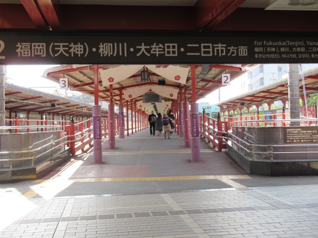 福岡から太宰府へは西鉄電車の太宰府線を使って行く方があります。西鉄太宰府線は二日市駅から五条駅そして次が太宰府駅になり距離はたった2.4㎞で約5分で到着です。
