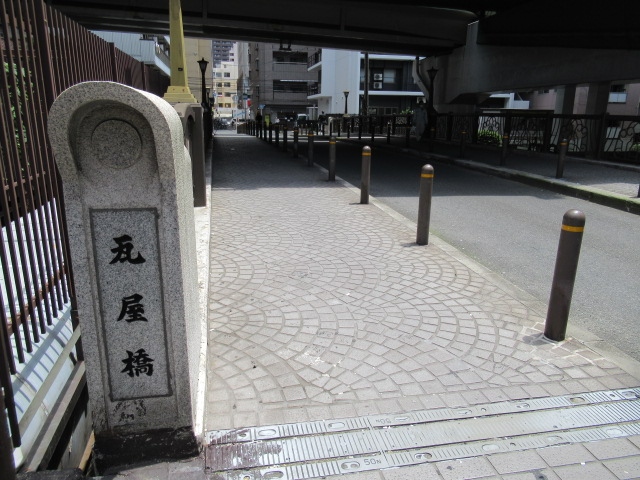 今回は東横堀川に架かる14の橋を全て制覇しようと張り切っています。くだらない?と思う人もいるかもしれませんが、くだらないことを実行するのも良いでしょう。「瓦屋橋」は葭屋橋から13番目の橋で終盤、道頓堀に近づいてきました。