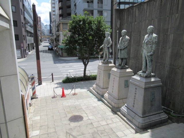 大阪松屋町筋をぶらぶらしています。人形や玩具の街として知られていますが史跡などもあり見どころもあります。そして大阪商工会議所には3人の像が建っていてその中の一番右が稲畑勝太郎です。