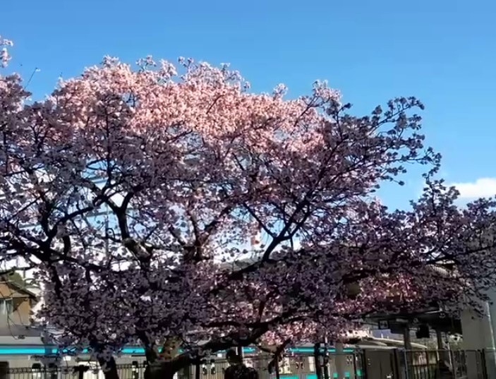 京都駅から奈良方面に運行している路線としてJR奈良線がありますが、途中の桃山駅で下車しました。理由は早桜として有名な河津桜よりもさらに早いともいわれている桜を眺めることです。ホームからも見れます。2月中旬なのにもう咲いていました。得した気分です。