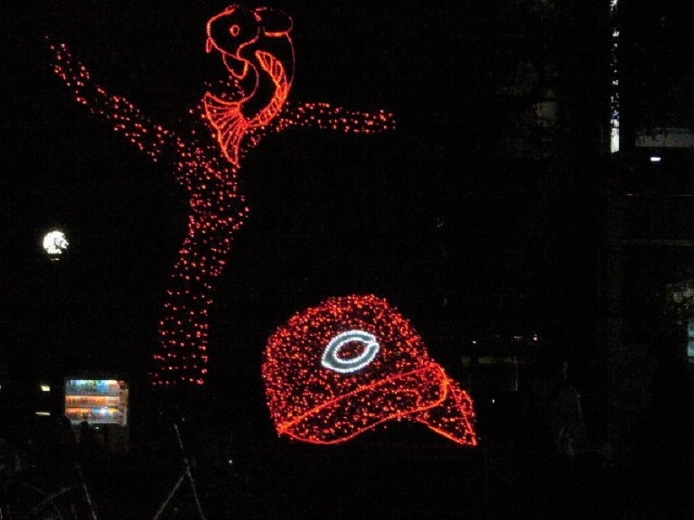 「ひろしまドリミネーション」は今年で19回目を迎え「おとぎの国」をテーマとして開催され約140万球の光でライトアップしています。カープらしいネオンが目に映りましたね。